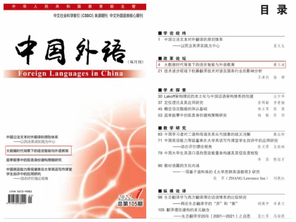 《中国外语》是由中华人民共和国教育部主管、高等教育出版社主办的CSSCI来源综合类外语学术期刊。刊登的该成果对外语教育领域的语言智能研究和人工智能领域的语言大数据研究具有重要启发和深远意义。