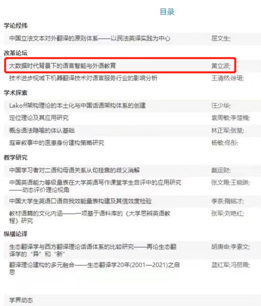 黄立波教授在《中国外语》上发表题为“大数据时代背景下的语言智能与外语教育”的学术论文。