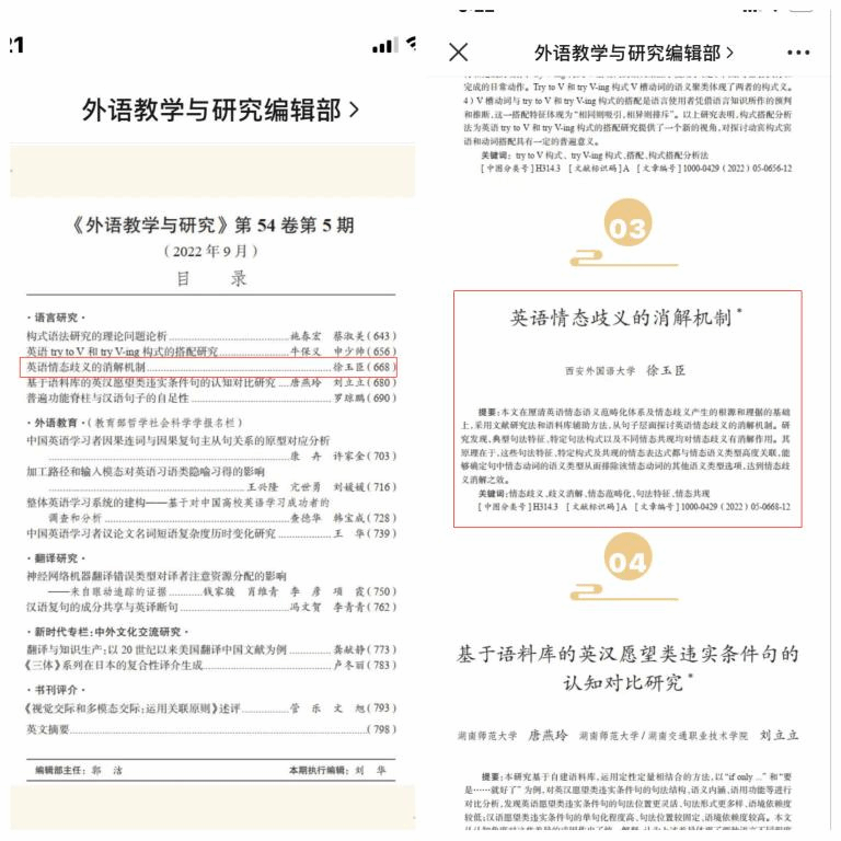 徐玉臣教授在《外语教学与研究》上发表题为“英语情态歧义的消解机制”的学术论文。