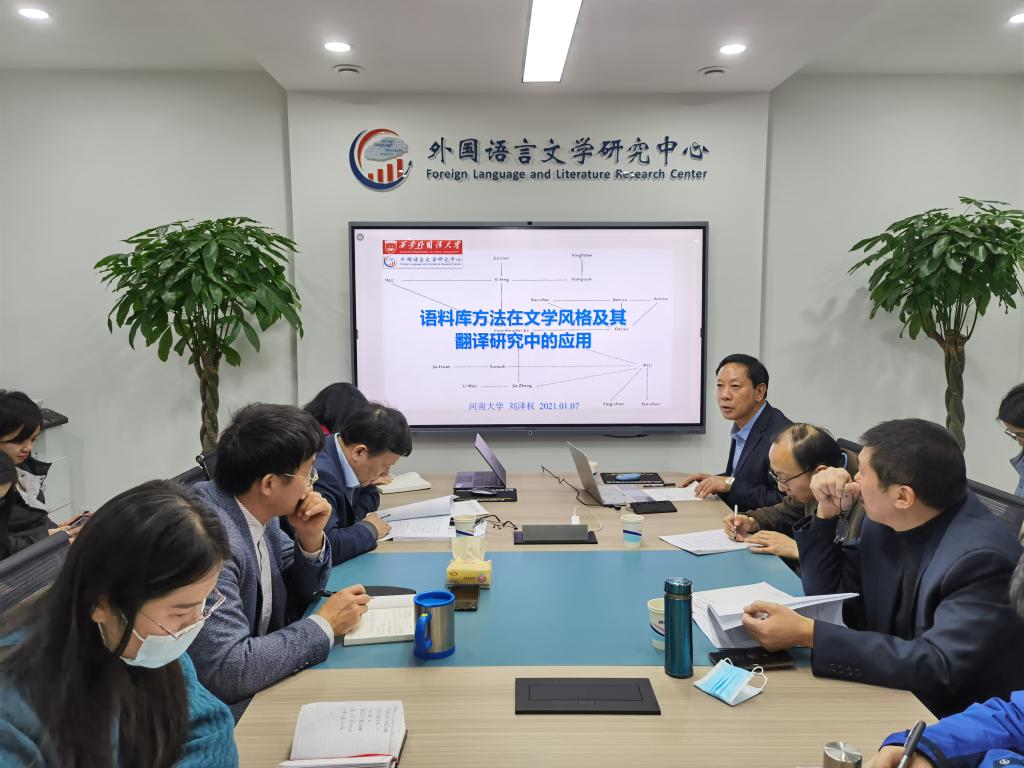 2021年1月7日上午,河南大学外语学院刘泽权教授应邀在我中心作了题为“语料库方法在文学风格及其翻译研究中的应用”的讲座,讲座由中心主任黄立波教授主持。五十多位来自我校及周边院校的师生参加了此次线下讲座。