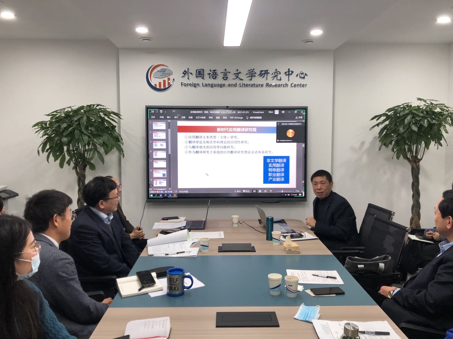 2021年1月7日上午,我中心“系列讲座”之四——“应用翻译研究:范畴、话题与趋势”——由上海大学外国语学院教授、博士生导师、《上海翻译》执行主编傅敬民教授主讲,中心主任黄立波教授主持。