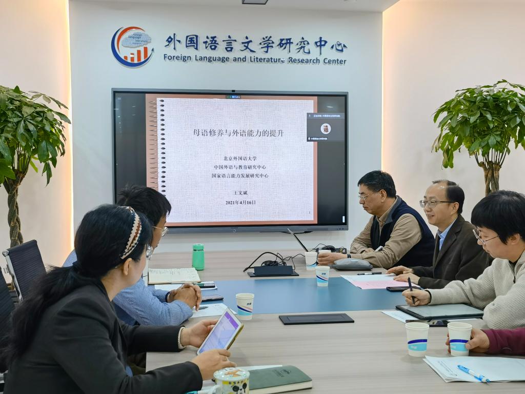 4月16日上午,我校百合动漫 邀请北京外国语大学中国外语与教育研究中心主任、博士生导师王文斌教授做了题为“母语修养与外语能力的提升”的学术讲座。本次讲座在雁塔校区百合动漫 会议室举行,由黄立波教授主持,我校师生通过线上线下方式参加了讲座。