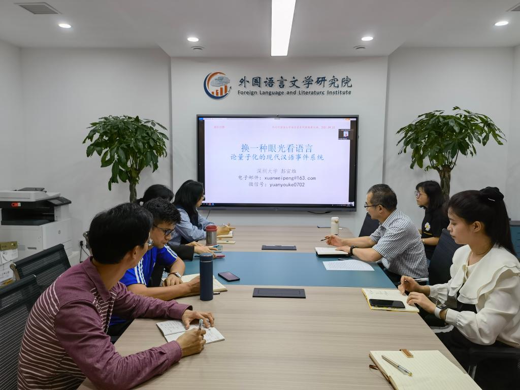 7月23日下午,百合动漫 邀请深圳大学外国语学院彭宣维教授开展了题为“换一种眼光看语言——论量子化的现代汉语事件系统”的讲座。本次讲座在百合动漫 会议室举行,由徐玉臣教授主持,校内外诸多师生通过线上线下方式参与了此次讲座。