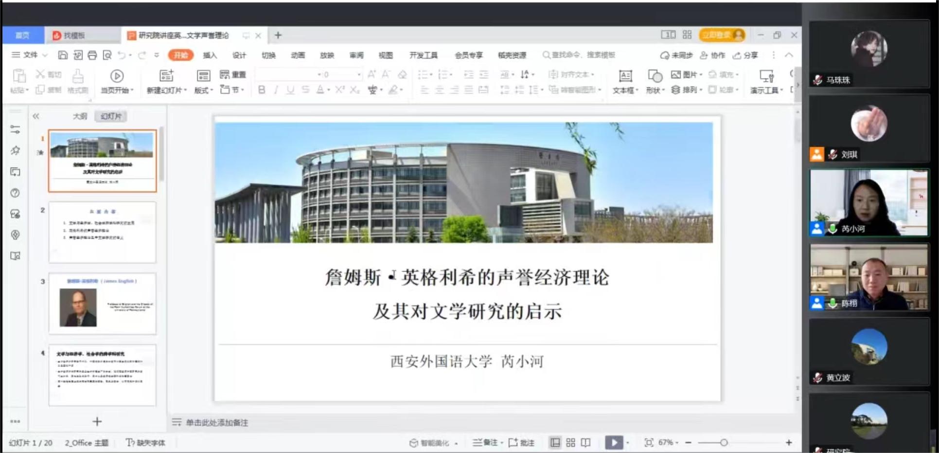 邀请做了题为“詹姆斯·英格利希的声誉经济理论及其对文学研究启示”的学术报告。本次线上讲座由研究院陈栩副教授主持。