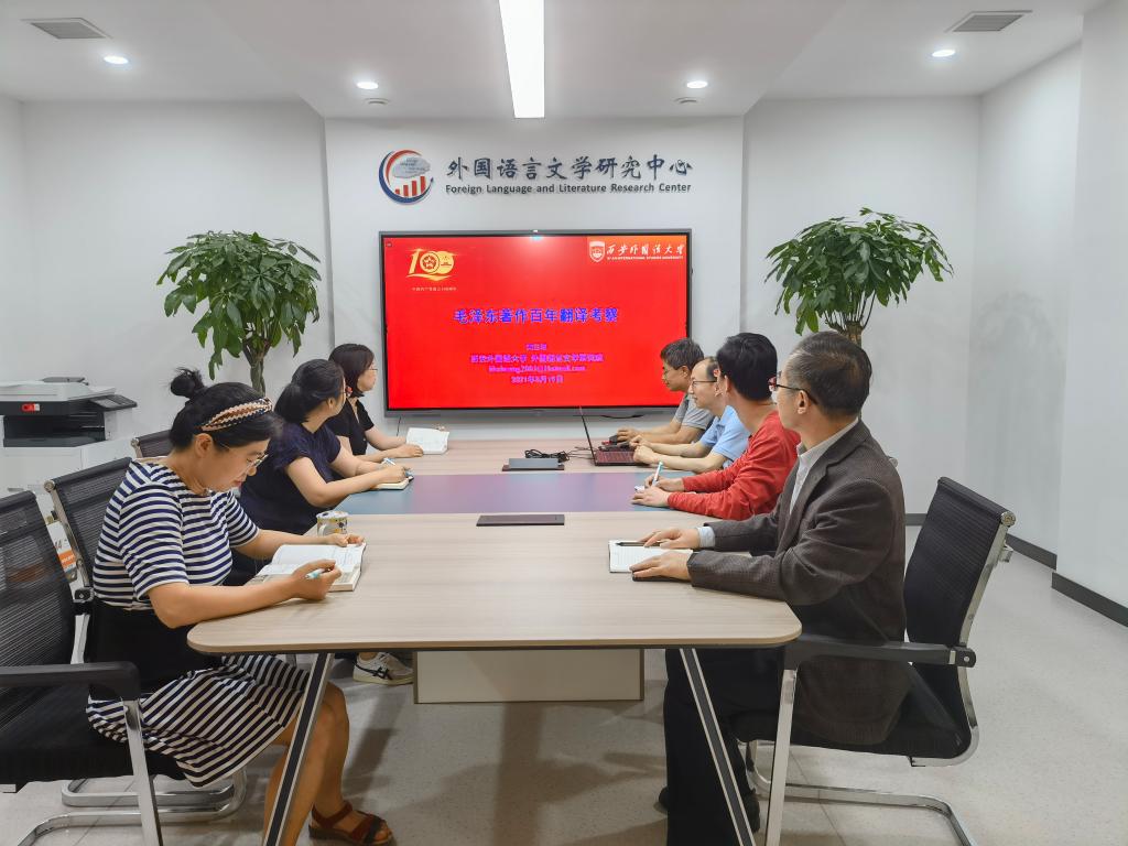 党支部书记黄立波同志在研究院会议室主讲了题为《毛泽东著作百年翻译考察》的专题党课,研究院全体党员参加。