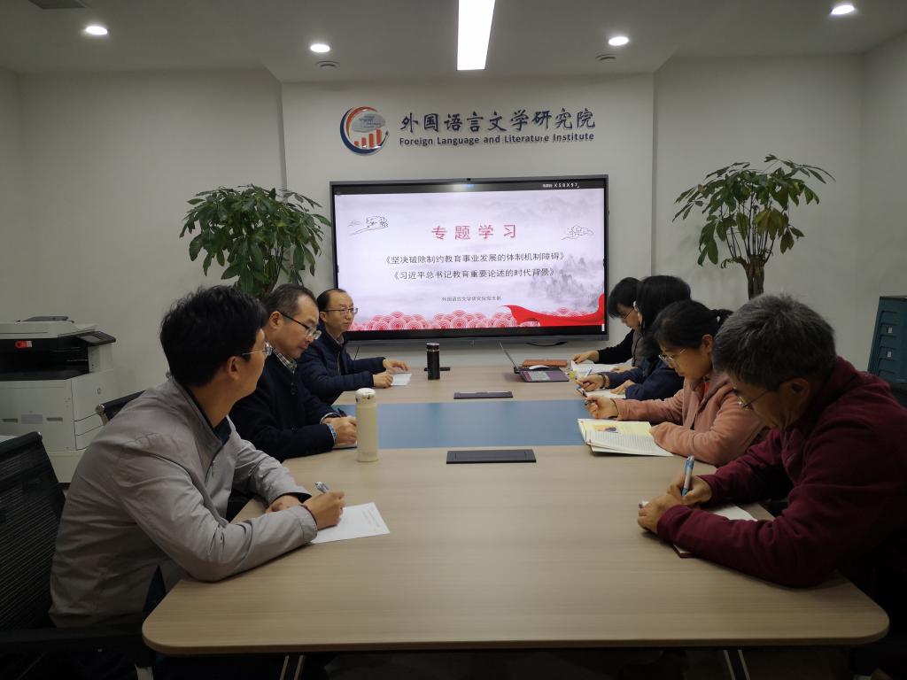 党支部在研究院会议室召开学习习近平总书记教育重要论述专题学习会。会议对《习近平谈治国理政》第三卷中《坚决破除制约教育事业发展的体制机制障碍》及《习近平总书记教育重要论述讲义》第一讲《习近平总书记教育重要论述的时代背景》中的相关内容进行了深入学习。此次专题学习由党支部书记黄立波教授主持,研究院全体党员参加。