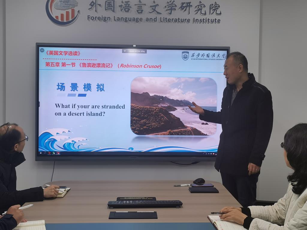 党支部在研究院会议室开展专题党课,支部陈栩副教授以教材为依托,深入挖掘外语课程对立德树人的重要作用,将课程思政有机融入课堂教学,以《鲁滨逊漂流记》为主题为研究院全体教职工讲授了专题党课。